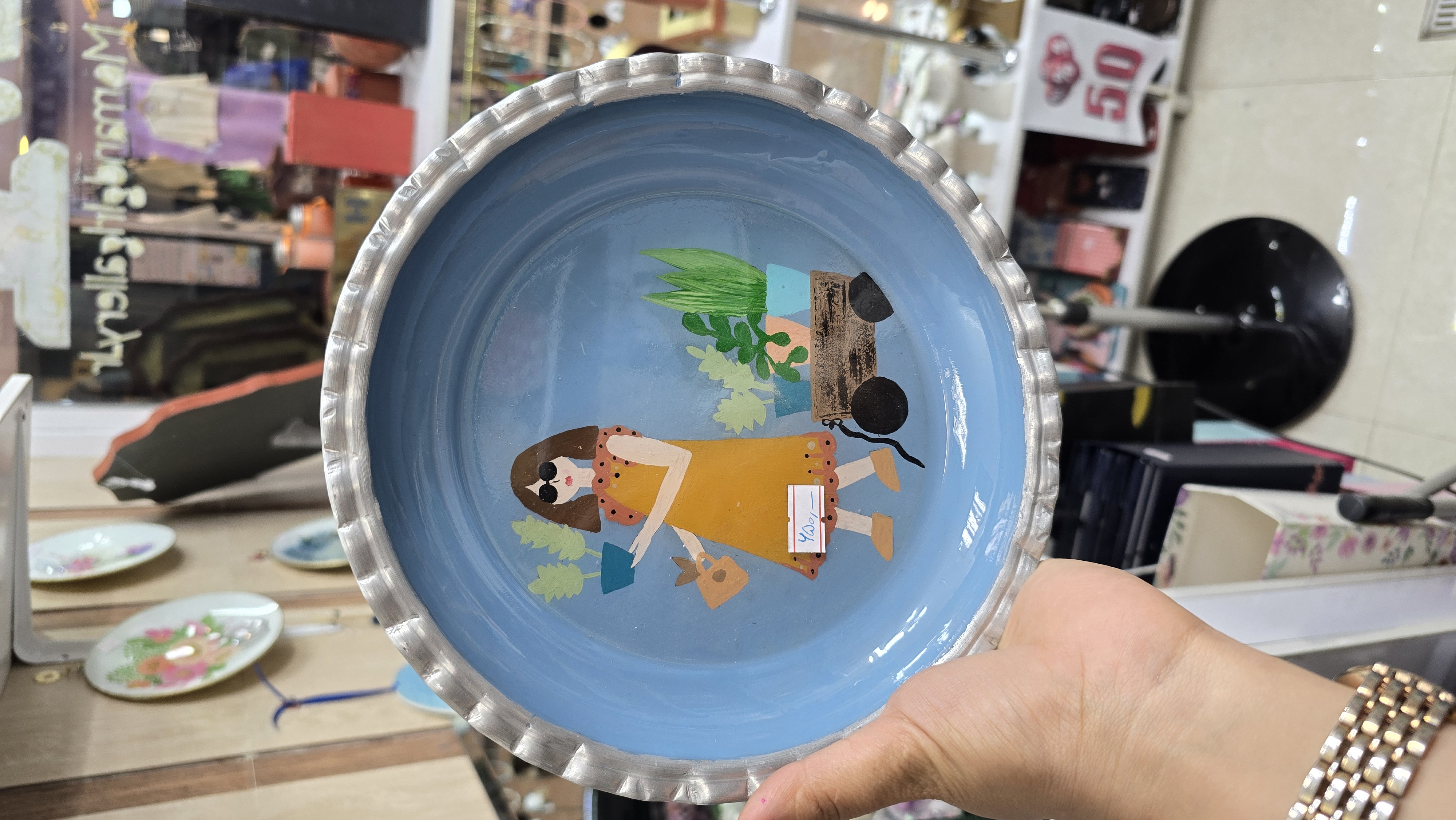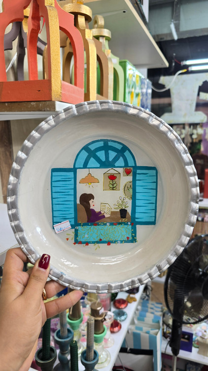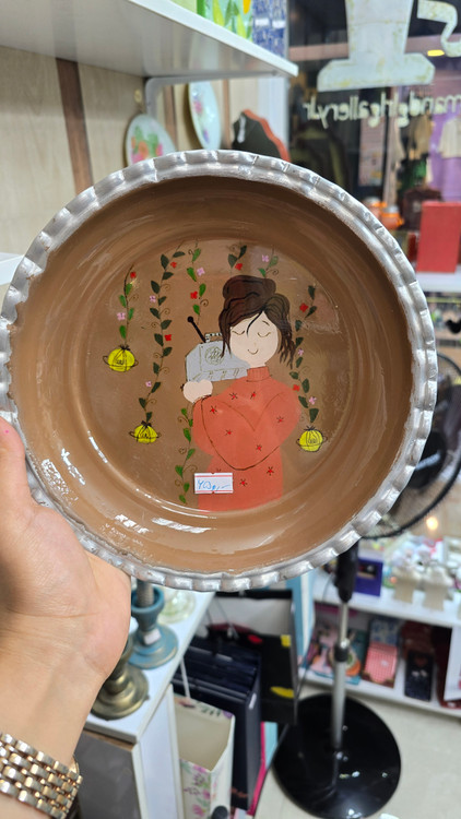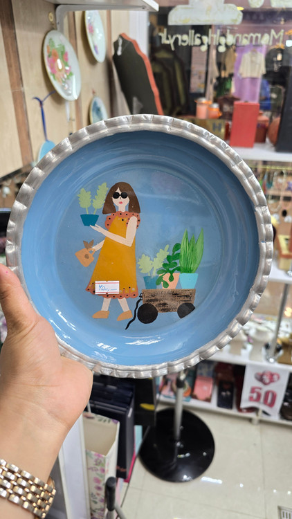 تابلو دیواری)بشقاب روی نقاشی دست و پوشانده شده با رزین)